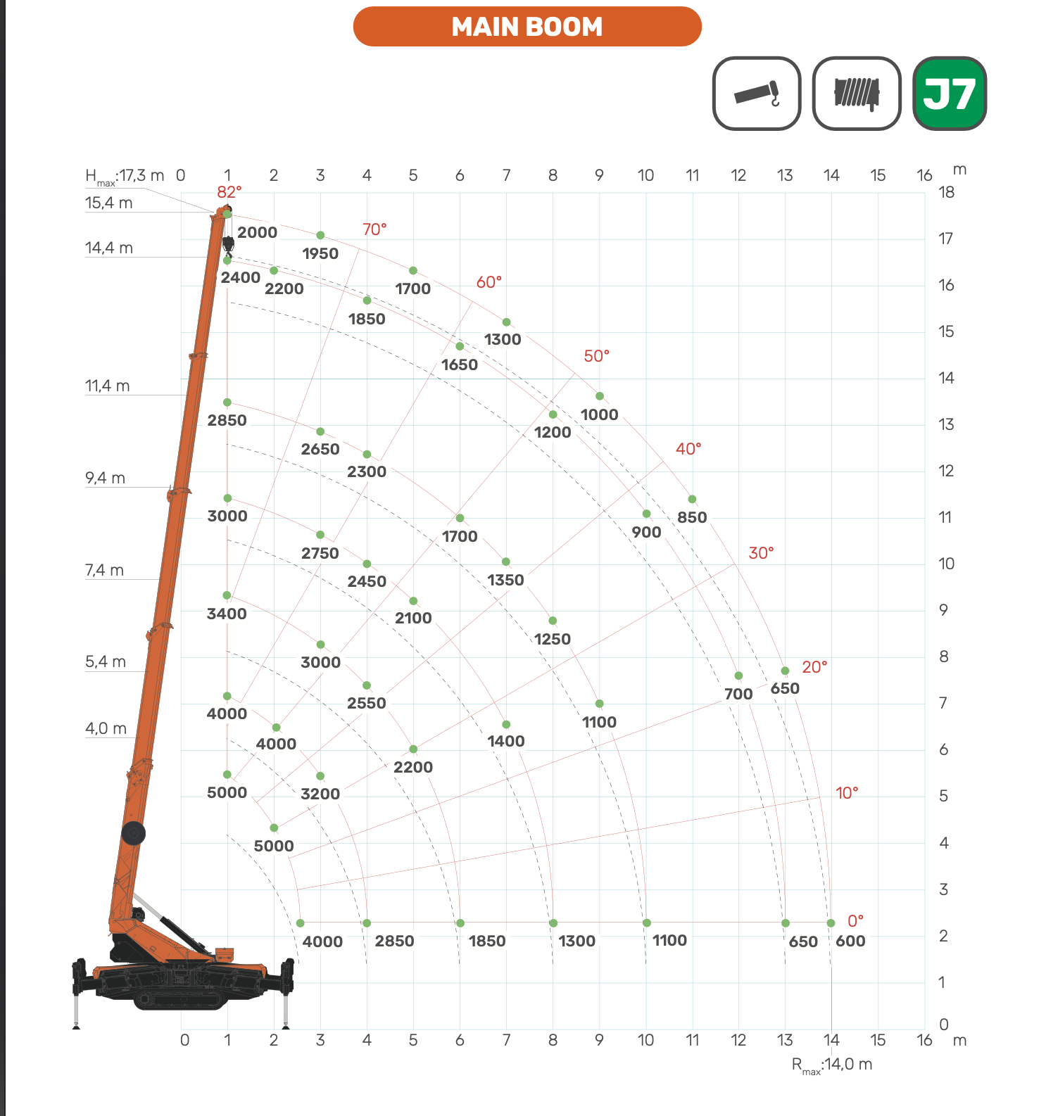 - Hauteur de levage : 23,7 m (77,8 pi)