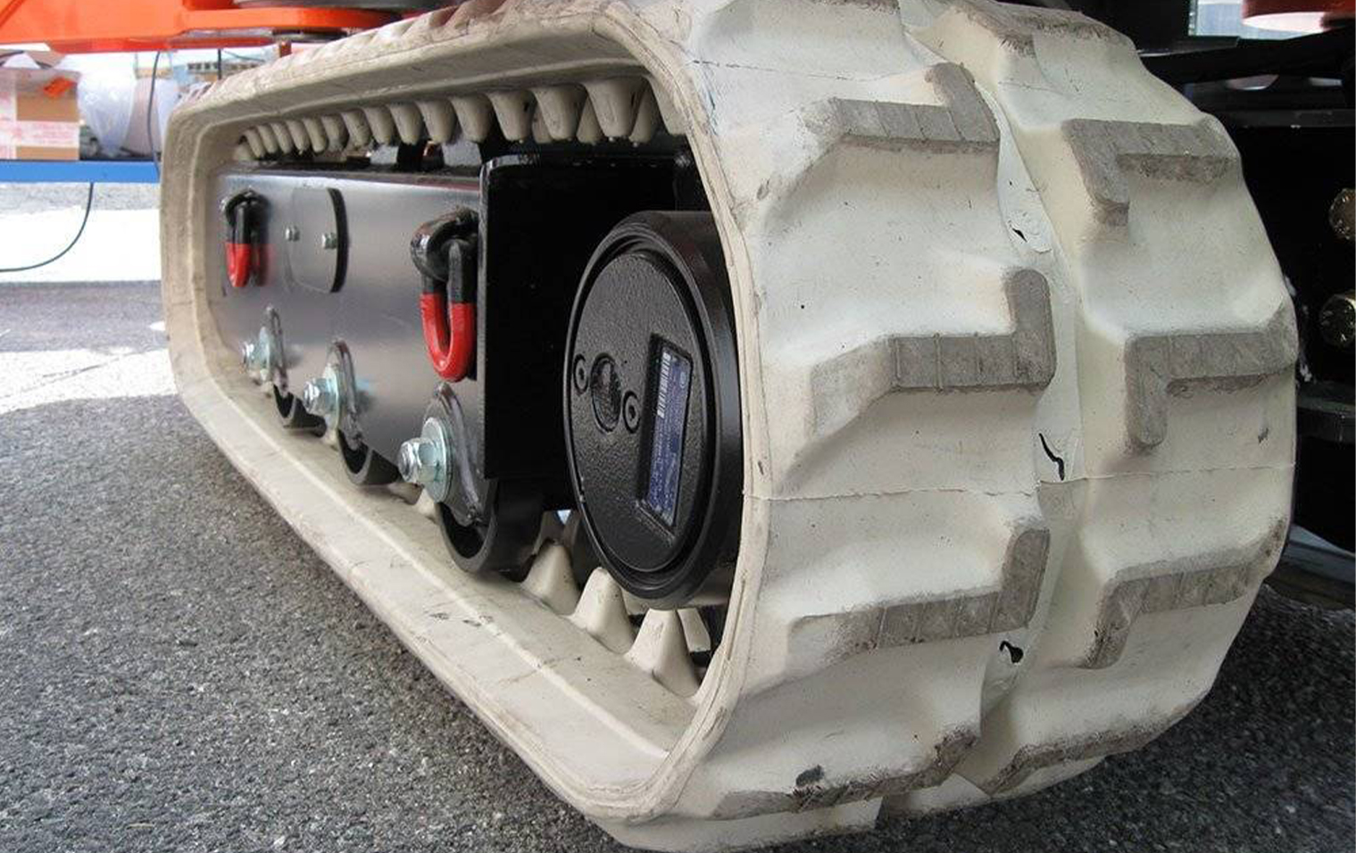 - Rotation continue à 360° et conduite fluide sur chenilles extensibles